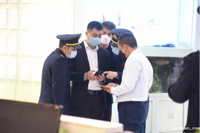 总经理刘小平向卫健委领导展示家乐士员工每日健康汇报情况