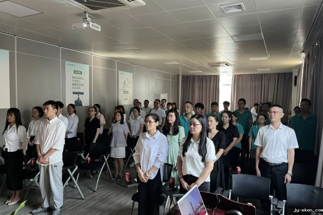 9时整,纪念大会正式开始。全体员工起立高唱国歌,注视着屏幕中天安门广场上冉冉升起的五星红旗,深切缅怀为民族独立和人民解放英勇献身的革命先烈。